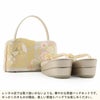 ■ 煌めく気品に、花々の寿ぎを映して ■ 晴れの日の装いに、洗練された輝きと華やぎを添える礼装用草履バッグセット。 バッグと鼻緒には、西陣織の帯地を使用し、シルバーを基調に、ゴールドや薄紫、ピンクなどの色糸で万寿菊や花丸紋を織り表しています。 金銀糸の煌めきと彩り豊かな文様が調和し、格式の中に女性らしい華を感じさせる佇まいです。 草履は、足元を品良くまとめるベージュゴールドの二枚芯。 程よい高さと安定感があり、見た目の美しさだけでなく履き心地にも配慮されています。 フォーマルな場にふさわしい品格と、装いを引き立てる存在感を兼ね備えたセットです。 ーおすすめポイントー ● 西陣織帯地を使用した、上質感のあるフォーマルバッグ ● 万寿菊・花丸紋がもたらす、吉祥感と華やぎ ● シルバーとゴールドを基調にパステルカラーの配色で、幅広いきものに合わせやすい ● ベージュゴールドの二枚芯草履で、安定感と美しい立ち姿を演出 ● 結婚式・式典・慶事全般に対応する礼装用草履バッグセット 品よく、華やかに――晴れの日を彩る一揃えです。