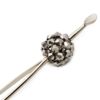 浴衣や和装のヘアアレンジを華やかに彩る飾り玉付かんざしです。 ラインストーンをギュッとまとめて飾り玉にしたかんざしは、光を反射する美しい仕上げ。 ミラーボールを思わせる立体感のあるディテールは、シンプルながらもさりげなく華やかな印象です。 かんざしは夏の着物や浴衣のヘアアクセサリーとしてはもちろん、ちょっとしたパーティーのアップスタイルにもおすすめ。 まとめ上げた髪に挿すだけで、華やかなヘアスタイルがお楽しみいただけます。 二本軸かんざしは、1本軸より安定感があるので、しっかりキープしたいという方におすすめです。 シンプルでカジュアルなデザインのかんざしは、洋服にも合わせられるので一本持っていると便利です。 合わせやすい色合いを2色ご用意致しました。 お手持ちの浴衣や着物に合わせてお気に入りをお選びください。