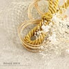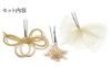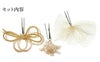 Watmosphere(ワトモスフィア)は、日本の伝統的な髪飾りやかんざしを現代風にアレンジした髪飾りブランド。 信頼の日本製で細部まで丁寧に作りこまれており品質も良く、大事な日を彩る華やかなアクセントにぴったりの髪飾りです。 ゴールドの水引やチュールが華やかな髪飾りのセット。 和モダンな雰囲気で異素材でもおしゃれな雰囲気。どんな雰囲気のきものでも合うでしょう。 すべてUピンで扱いやすく、シニヨンなどのアップスタイルはもちろん、ハーフアップや編み下ろし、ポニー、ショートやボブといったどんな髪型でも可愛らしく飾ってくれます。 成人式の振袖や卒業式の袴のヘアスタイルのプラスワンアイテムとして、また七五三・七歳の髪飾りとして、華やかな装いを楽しみたい日のおともにぜひお手に取っていただきたい逸品です。