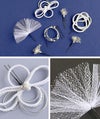 成人式や結婚式での振袖や卒業袴といった、華やかなおきものの装いに合わせていただけるWatmosphereの髪飾りです。 Watmosphere(ワトモスフィア)は、日本の伝統的な髪飾りやかんざしを現代風にアレンジした髪飾りブランド。 信頼の日本製で細部まで丁寧に作りこまれており品質も良く、大事な日を彩る華やかなアクセントにぴったりの髪飾りです。 ゴールド・シルバー それぞれワントーンでロープや水引でシックな印象を演出。 花なしのセットでありながら、水引やチュール、パールが煌めくモダンな華やぎがあります。 すべてUピンで扱いやすく、シニヨンなどのアップスタイルはもちろん、ハーフアップや編み下ろし、ポニー、ショートやボブといったどんな髪型でも可愛らしく飾ってくれます。 お母様の振袖(ママ振り)やお姉様の振袖を受け継いで、髪飾りなどの小物を新調したコーディネートにするお嬢様も多くいらっしゃいます。 レンタルの振袖であったり譲りものの振袖をお召しの機会であっても一つでもこだわって選んだアイテムがあるとお慶びの席のご気分が高まりますし、お洒落なデザインの髪飾りは振袖コーデの中でもぱっと目を引く存在になるでしょう。 華やかな装いを楽しみたい日のおともに、ぜひお手に取っていただきたい髪飾りです。