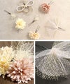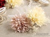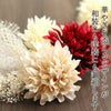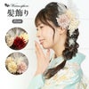 成人式や結婚式での振袖や卒業袴といった、華やかなおきものの装いに合わせていただけるWatmosphereの髪飾りです。 Watmosphere(ワトモスフィア)は、日本の伝統的な髪飾りやかんざしを現代風にアレンジした髪飾りブランド。 信頼の日本製で細部まで丁寧に作りこまれており品質も良く、大事な日を彩る華やかなアクセントにぴったりの髪飾りです。 ふわふわした花びらが可愛らしい花飾りに、ロープと水引で拵えた飾りやゴールドのチュールなど、異素材をおしゃれに組み合わせたボリュームたっぷりのセット。 すべてUピンで扱いやすく、シニヨンなどのアップスタイルはもちろん、ハーフアップや編み下ろし、ポニー、ショートやボブといったどんな髪型でも可愛らしく飾ってくれます。 お母様の振袖(ママ振り)やお姉様の振袖を受け継いで、髪飾りなどの小物を新調したコーディネートにするお嬢様も多くいらっしゃいます。 レンタルの振袖であったり譲りものの振袖をお召しの機会であっても一つでもこだわって選んだアイテムがあるとお慶びの席のご気分が高まりますし、お洒落なデザインの髪飾りは振袖コーデの中でもぱっと目を引く存在になるでしょう。 華やかな装いを楽しみたい日のおともに、ぜひお手に取っていただきたい髪飾りです。