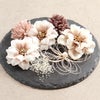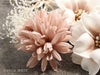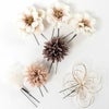 成人式や結婚式での振袖や卒業袴といった、華やかなおきものの装いに合わせていただけるWatmosphereの髪飾りです。 Watmosphere(ワトモスフィア)は、日本の伝統的な髪飾りやかんざしを現代風にアレンジした髪飾りブランド。 信頼の日本製で細部まで丁寧に作りこまれており品質も良く、大事な日を彩る華やかなアクセントにぴったりの髪飾りです。 コスメに使われるような肌馴染みの良いグレージュ・ブラウン系の花飾り。 ヘアスタイルにレディーな雰囲気をプラスします。 すべてUピンで扱いやすく、シニヨンなどのアップスタイルはもちろん、ハーフアップや編み下ろし、ポニー、ショートやボブといったどんな髪型でも可愛らしく飾ってくれます。 お母様の振袖(ママ振り)やお姉様の振袖を受け継いで、髪飾りなどの小物を新調したコーディネートにするお嬢様も多くいらっしゃいます。 レンタルの振袖であったり譲りものの振袖をお召しの機会であっても一つでもこだわって選んだアイテムがあるとお慶びの席のご気分が高まりますし、お洒落なデザインの髪飾りは振袖コーデの中でもぱっと目を引く存在になるでしょう。 華やかな装いを楽しみたい日のおともに、ぜひお手に取っていただきたい髪飾りです。