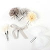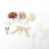 成人式や結婚式での振袖や卒業袴といった、華やかなおきものの装いに合わせていただけるWatmosphereの髪飾りです。 Watmosphere(ワトモスフィア)は、日本の伝統的な髪飾りやかんざしを現代風にアレンジした髪飾りブランド。 信頼の日本製で細部まで丁寧に作りこまれており品質も良く、大事な日を彩る華やかなアクセントにぴったりの髪飾りです。 くすみカラーがふんわり柔らかい印象を与える花飾りに、ベロアリボンとチュールリボンでガーリーな仕上がりになるセット すべてUピンで扱いやすく、シニヨンなどのアップスタイルはもちろん、ハーフアップや編み下ろし、ポニー、ショートやボブといったどんな髪型でも可愛らしく飾ってくれます。 お母様の振袖(ママ振り)やお姉様の振袖を受け継いで、髪飾りなどの小物を新調したコーディネートにするお嬢様も多くいらっしゃいます。 レンタルの振袖であったり譲りものの振袖をお召しの機会であっても一つでもこだわって選んだアイテムがあるとお慶びの席のご気分が高まりますし、お洒落なデザインの髪飾りは振袖コーデの中でもぱっと目を引く存在になるでしょう。 華やかな装いを楽しみたい日のおともに、ぜひお手に取っていただきたい髪飾りです。