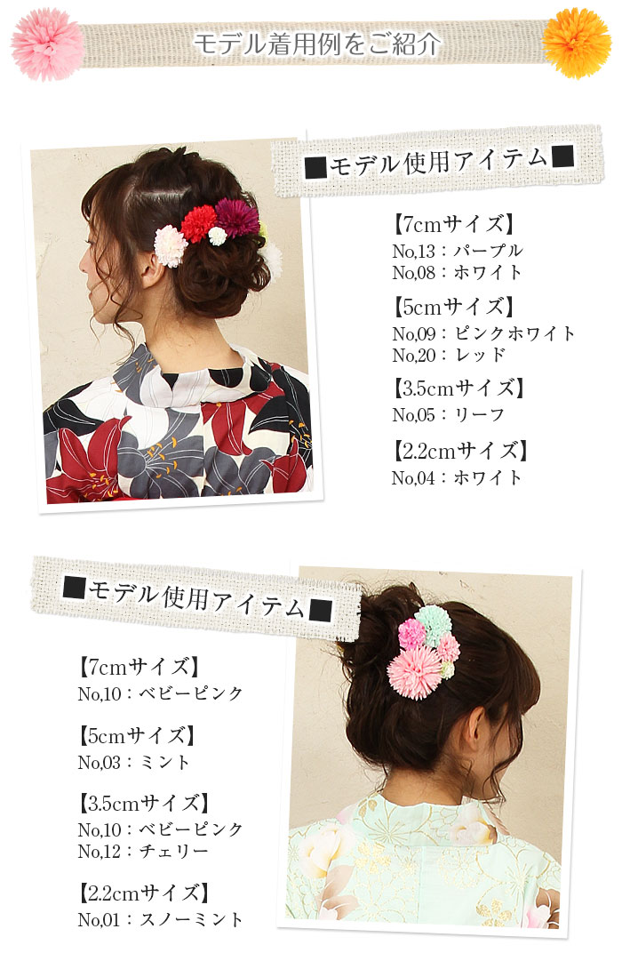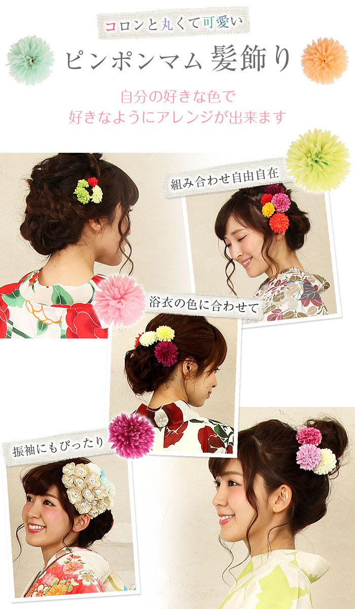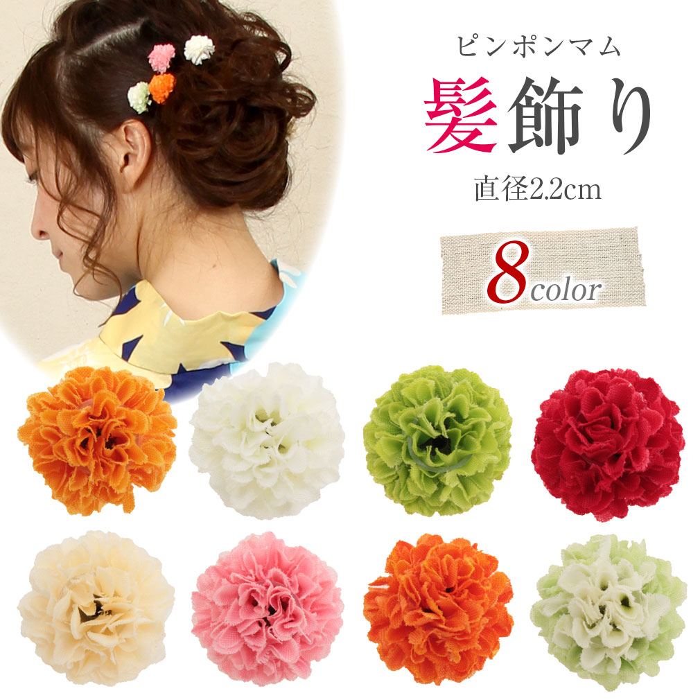 浴衣 髪飾り ピンポンマム 直径約2.2cm(小さめサイズ) <8色>