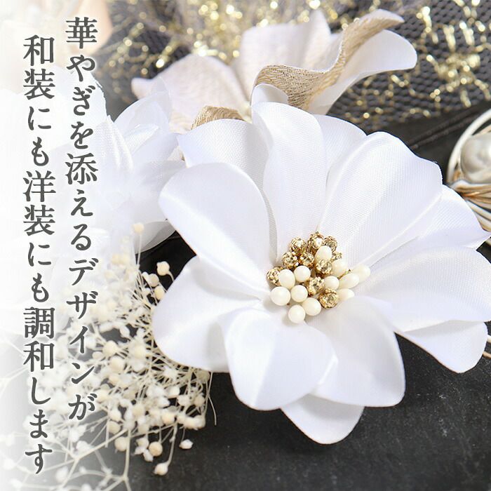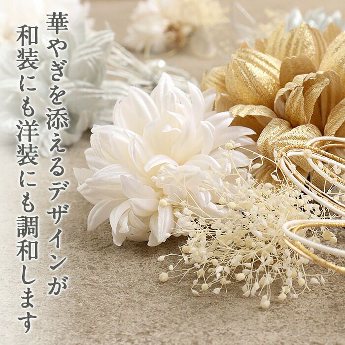 他の画像を見る 成人式や結婚式の華やかな振袖や卒業袴に 髪飾り 成人式 振袖用 Watmosphere ホワイト 白 ゴールド シルバー 花 水引き アメリカンフラワー かすみ草 日本製 振袖 卒業袴 振り袖 ママ振 当店特別価格 ¥ 12,100 税込 (0) お気に入りに登録する