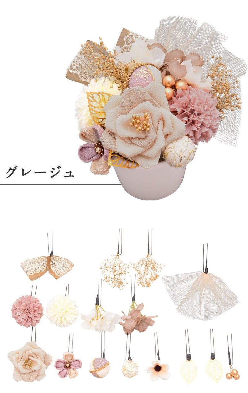 使い勝手のよいUピン使用 髪飾り 成人式 振袖用 成人用 プティダリア 花 ピンクベージュ ライトグレー 全2色 Arenca レース 玉飾り日本製