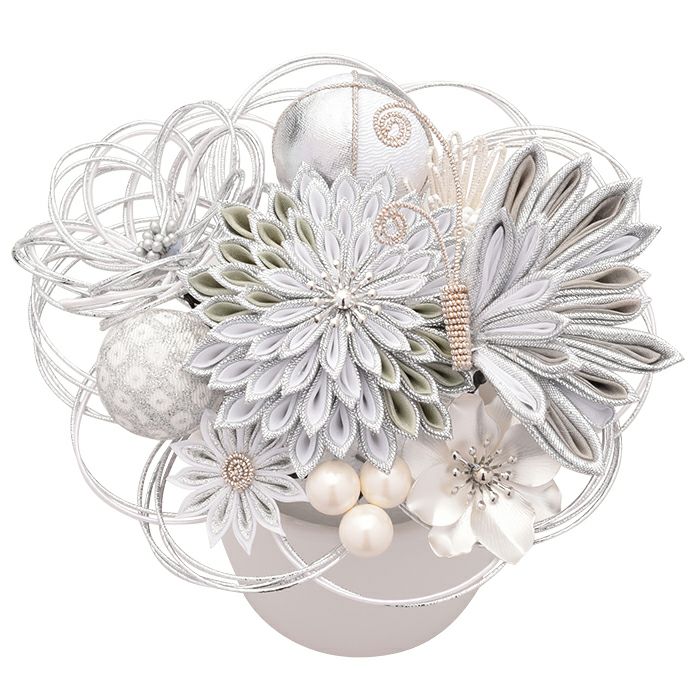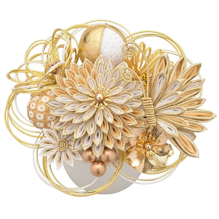 使い勝手のよいUピン使用 髪飾り 成人式 振袖用 成人用 麗華爛漫 剣菊 蝶 ゴールド シルバー 全2色 Arenca つまみ細工 水引 玉飾り日本製