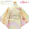 淡いグリーン、イエローのグラデーションがベース地の温かみのある色合いのお着物です。