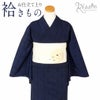 着物 お仕立上り 袷 Lサイズ 東レ シルクデュエット <ダークネイビー/オリエンタル更紗>
