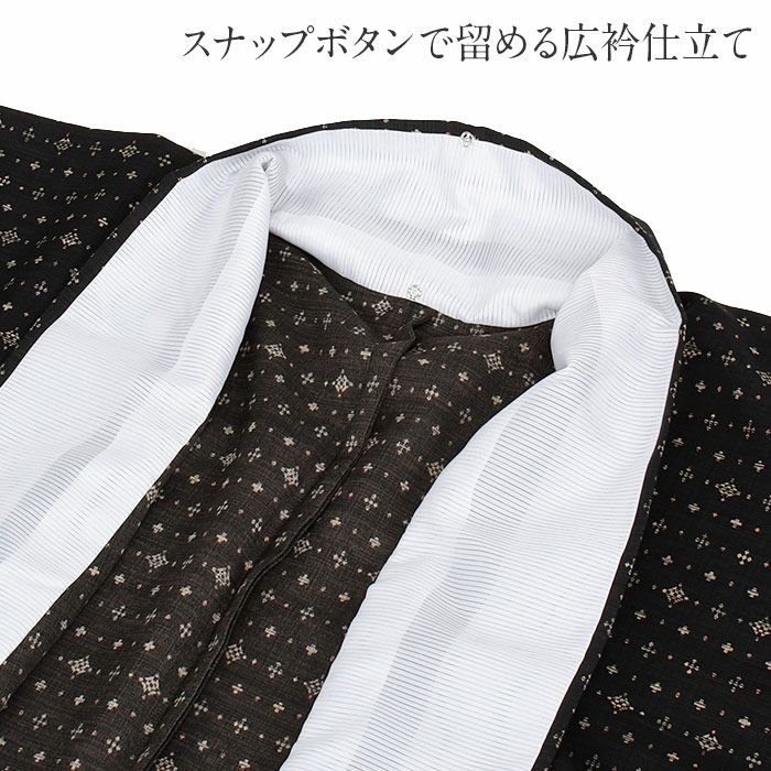 春の汗ばむ陽気から真夏、残暑の秋まで着られる 着物 洗える 単衣 セオアルファ 夏着物 裄丈66 裄丈68 薄物 セオα 日本製 M L 黒 絣風 広衿仕立て レディース