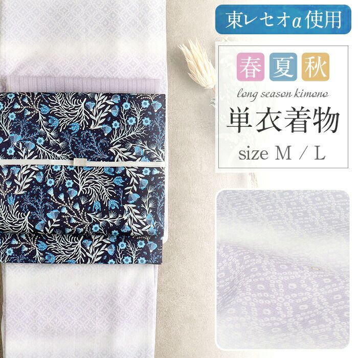 春の汗ばむ陽気から真夏、残暑の秋まで着られる 着物 洗える 単衣 セオアルファ 夏着物 裄丈66 裄丈68 薄物 セオα 日本製 M L 薄藤 薄灰 鹿の子 広衿仕立て