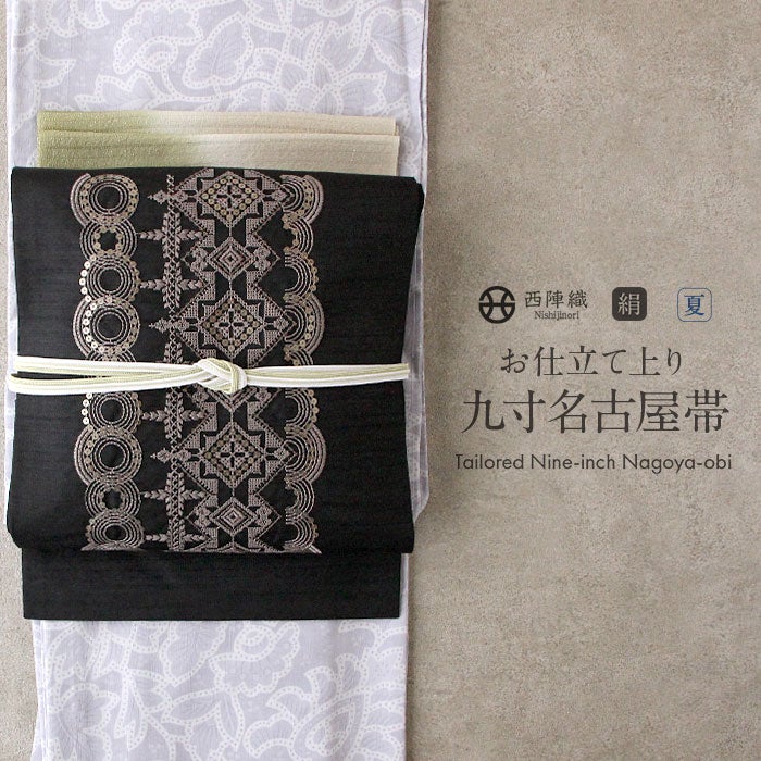 他の画像を見る 《お仕立て上り》【最短日お届け】夏の小紋 紋紗 色無地 御召 などのお着物に 名古屋帯 夏 夏名古屋帯 夏帯 黒 サークル レース柄 刺繍 スパンコール Tomogisu Craft 普段用 九寸 仕立て上がり 絹 当店特別価格 ¥ 71,500 税込 (0) お気に入りに登録する
