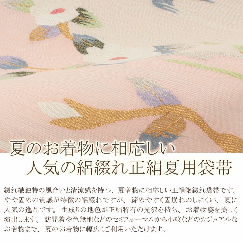 他の画像を見る 《値下げ!27500円→25000円》【最短日お届け】夏のきものライフを涼やかに満喫☆ 夏用絽綴れ袋帯 夏帯 袋帯 <オフホワイト&ピンク系/流水花> 正絹 絽 綴れ 仕立て上がり 当店特別価格 ¥ 27,500 税込 (0) カートに入れる お気に入りに登録する