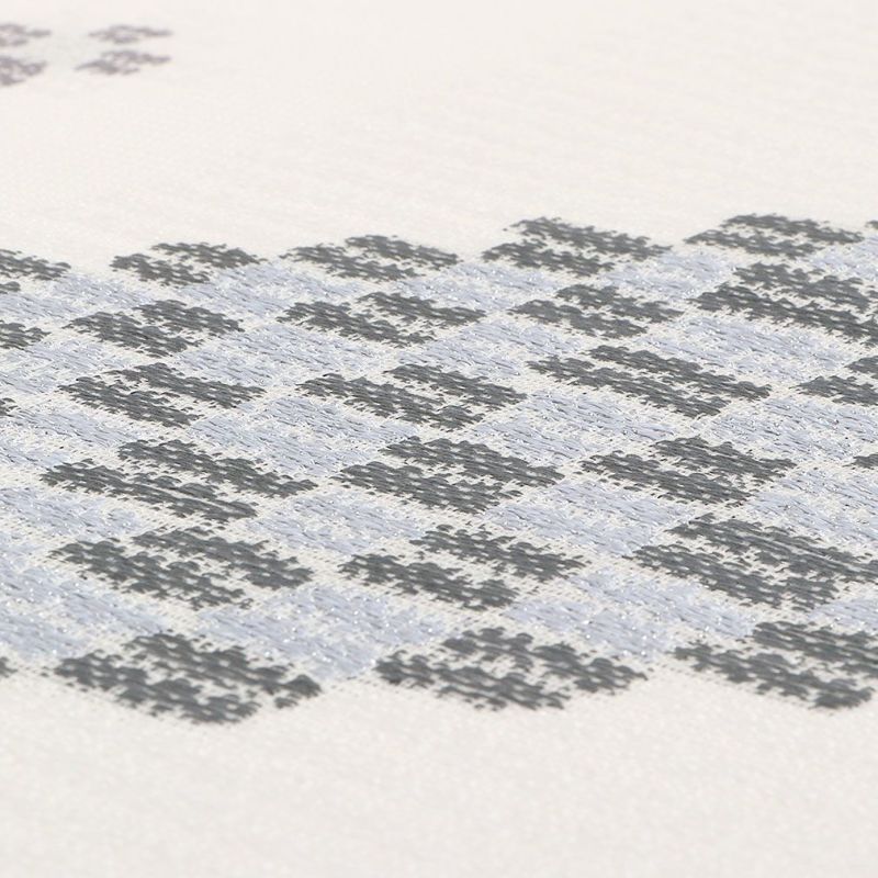 届いて直ぐに使える夏用のお仕立て上がりの袋帯です。 京都西陣で織り上げられ、西陣織の証紙が付いた品質確かな逸品。 絹糸で織られた本商品はしなやかな手触りで締め心地が良く、通気性も優れており初夏から初秋までご利用になれます。 爽やかな白の帯地に茶系・青系のモザイク菱の模様を織り込んだ上品な印象の袋帯です。 夏のお洒落訪問着や付け下げ、色無地など幅広くご利用いただけます。 上品で涼やかな夏のお着物にふさわしい袋帯。 ちょっとしたお出掛けにお勧めの商品です。 本商品はたれ先から前腹まで柄が織り込んでおりますので、帯結びが苦手な方にも結びやすく、着物初心者の方でも柄出しを気にせず気軽に結んでいただけます。