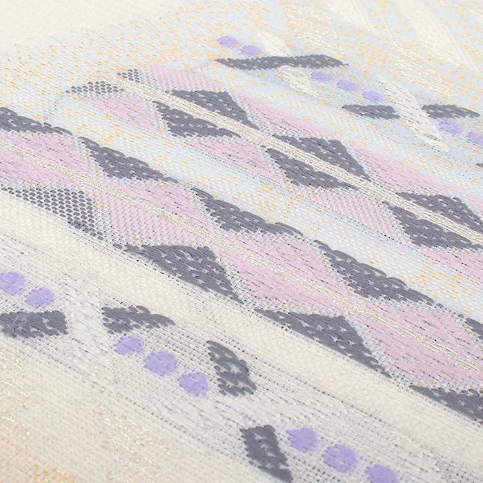 ※実際の商品と同じ色合いに画像修正をしておりますが、環境やモニターの違いにより多少色の違いが出て来ることがあります、ご了承ください。 ※生地の取り方により、柄の出方が異なる場合がございます。 ※こちらの帯はすでにお仕立てが済んでいる帯です。 ※お仕立ては『袋帯仕立て』となります。