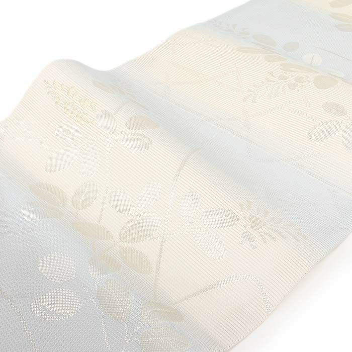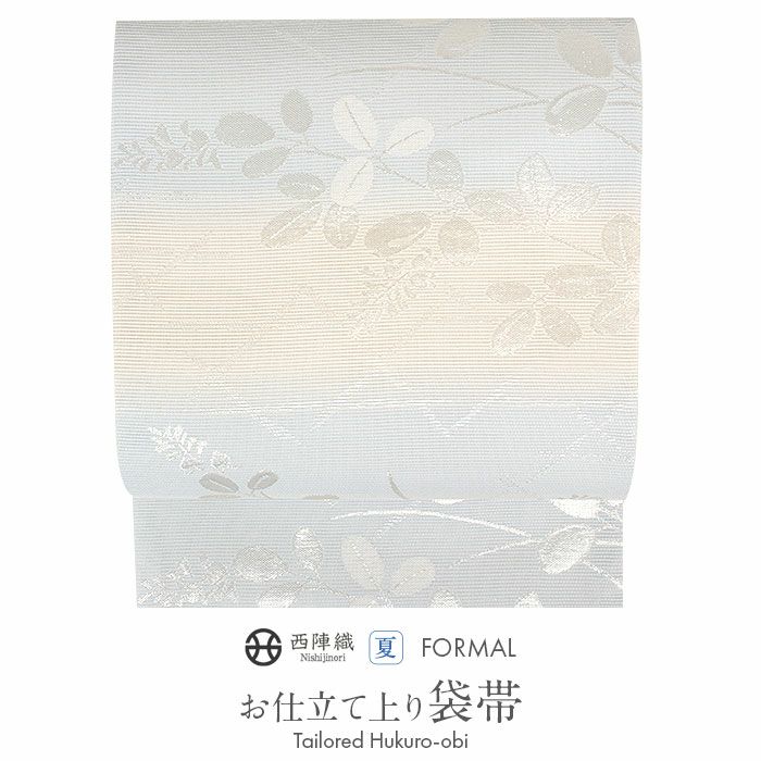 夏袋帯 袋帯 夏帯 フォーマル 夏留袖 夏訪問着 アイボリー 水色 リーフ 絽 京都イシハラ織物 西陣織 仕立て上がり 新品 未使用 正絹