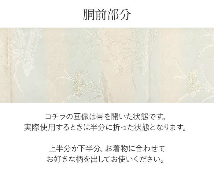 夏袋帯 袋帯 夏帯 フォーマル 夏留袖 夏訪問着 アイボリー 薄緑 花菖蒲 流水 絽 京都イシハラ織物 西陣織 仕立て上がり 新品 未使用 正絹