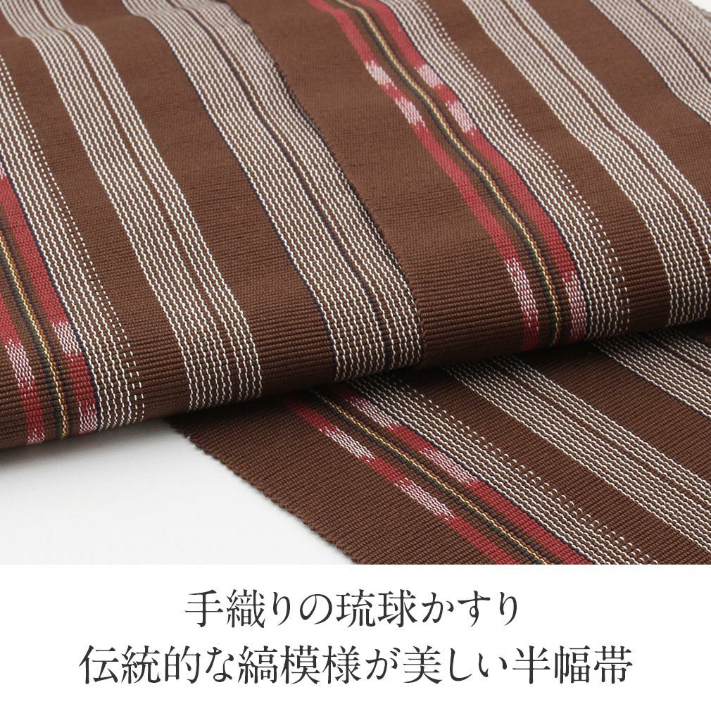 他の画像を見る 【最短日お届け】浴衣帯 半幅帯 琉球かすり 日本製 綿100% 半幅帯 琉球かすり 茶 赤 縞 日本製 綿 帯 浴衣 ゆかた ゆかた帯 当店特別価格 ¥ 17,600 税込 (0) カートに入れる お気に入りに登録する