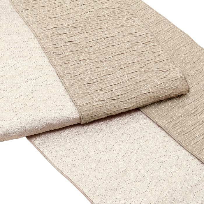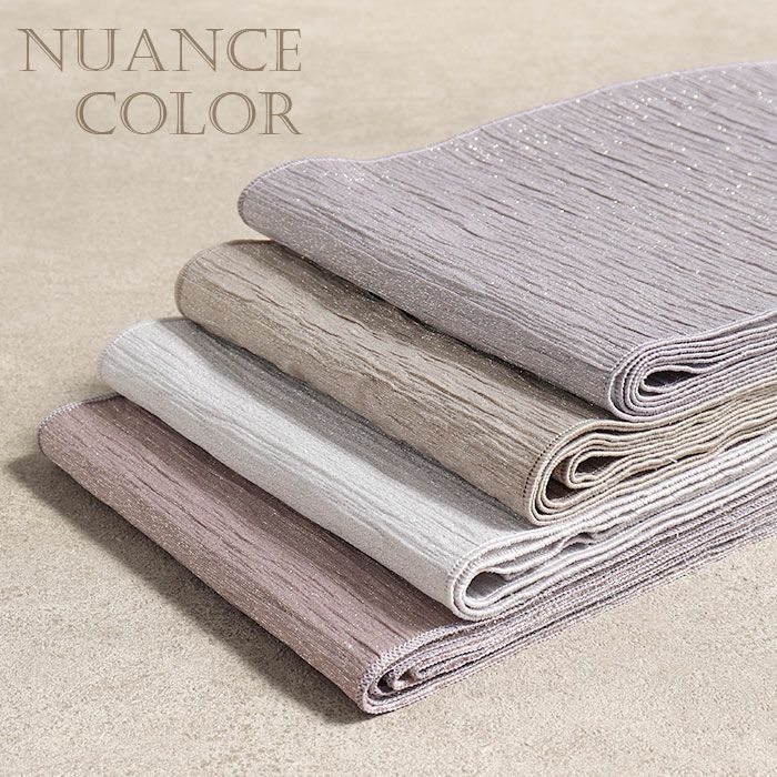 ◆ニュアンスカラーで魅せる、私らしいスタイル◆ しじら織による表情豊かな凹凸に、ゴールドやシルバーの極細ラメ糸を織り込み、上品に輝く一本に仕上げました。 光に当たるたびにふわりと艶めき、浴衣や普段着物、袴姿をさりげなくクラスアップ。 やわらかく結びやすい素材だから、大人の方にもお子様にも楽しんでいただけます。 初心者さんでも扱いやすいのも嬉しいポイントです。 カジュアル着物はもちろん、浴衣にも袴にも使える、活躍シーンの多い半幅帯です。 ―おすすめポイント― ●しじら織の上品な凹凸感 ●ゴールド&シルバーのラメが控えめに煌めく ●軽量でやわらかく、結びやすい ●今どき感のあるニュアンスカラー展開 ●色々なスタイルに合わせやすいシンプルで洗練されたデザイン ●着姿をさりげなく華やかにアップグレード 上品な“キレイ見え”を叶えてくれる、今どきの一本です。