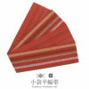 本場筑前博多織 小野織物の正絹半幅帯です。 本場筑前博多織は、その締め心地のよさから多くのきもの愛好家に好まれているお品です。 ■表は、鮮やかな朱色を基調に、黄・茶・黄緑・白の横段の唐草模様が織り込まれた、色彩豊かで印象深いデザイン。 装いに華やぎと品格を添えてくれます。 ■裏は、同色地のシンプルなデザインで、どちらも魅力的です。 絹糸で織り上げられているため、通気性や吸湿性に優れ、季節を問わず快適にお使いいただけます。 締め心地も抜群で、「キュッ」とした絹鳴りが響くほどの締まりやすさと緩まない特性は、博多帯ならではの魅力です。 しっかりと打ち込まれた緯糸が絹の光沢と生地のツヤ・ハリを持たせ、人と差がつく着姿を演出します。 お稽古事はもちろん、観劇、芸術鑑賞、ショッピング、ちょっとしたお出掛け等ご活用の幅も広いでしょう。 適度に長さがあり、結び方によって様々な表情を演出できるのも魅力の一つです。 貝ノ口やかるた結びなどの小粋でスマートな帯結びから、三重仮紐を使ったボリュームのある変わり結びまで楽しめる半幅帯は、1本増えるだけで着物コーディネートの楽しみがグッと広がります。 ぜひ、この素敵な半幅帯をワードローブに加えて、着物ライフをさらに充実させてみませんか?