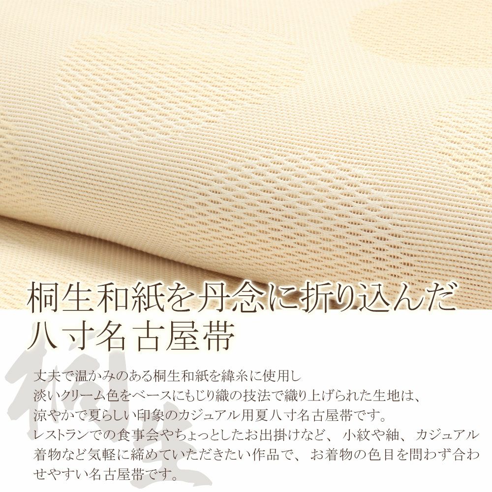 他の画像を見る 《値下げ!38000円→30000円》《お仕立て上り》【最短日お届け】夏の単衣・薄物のお着物に 夏帯 九寸 名古屋帯 <生成りホワイト/幾何学> 麻 桐生織 <井清織物> 仕立て上がり 当店特別価格 ¥ 33,000 税込 (0) カートに入れる お気に入りに登録する