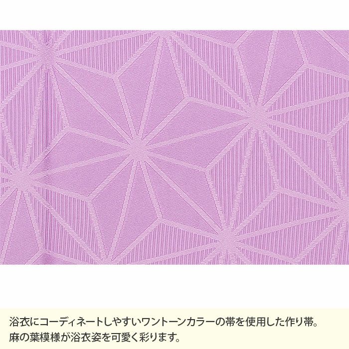 夏の花火大会や夏祭りの浴衣に合わせて楽しみたい作り帯です。 リボン結びの形が出来ている作り帯は、着用方法もとてもシンプル。 前帯を結び、差し込むだけで着付けが完了するので、着崩れの心配がありません。 座ったり運転時など必要に応じて着脱可能です。 タレのあるリボン結びがお洒落なデザイン。帯結びが苦手な方でも簡単に可愛く浴衣姿が決まります。 素材はポリエステル100%ですので汚れても安心。 お手入れ簡単で気軽にお出かけが楽しめます。 去年買ったゆかたでも、帯を新調するだけでまたぐっと印象が変わってきます。 お手持ちの浴衣や着物と合わせて、おしゃれな浴衣コーディネートで夏のお出かけを楽しんでみませんか。