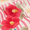 オフホワイト・ピンク地に赤・白・緑系 / ストライプに椿