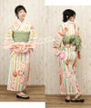 浴衣 単品 《tsumori chisato》お仕立て上がり浴衣 <オフホワイト 橙 緑 /縞と花もよう> 綿100% 日本製