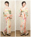 オフホワイト・緑・橙 からし他 / 縞と花もよう