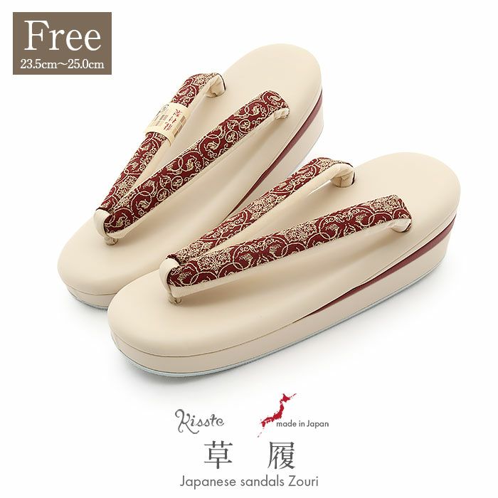 小紋 紬 色無地 御召 ウール 木綿 など普段着きものに 草履 レディース 普段用 カジュアル草履 龍村裂 龍村美術織物裂 ベージュ エンジ ワイン 唐草文錦 後ろ3枚芯 日本製