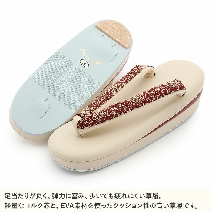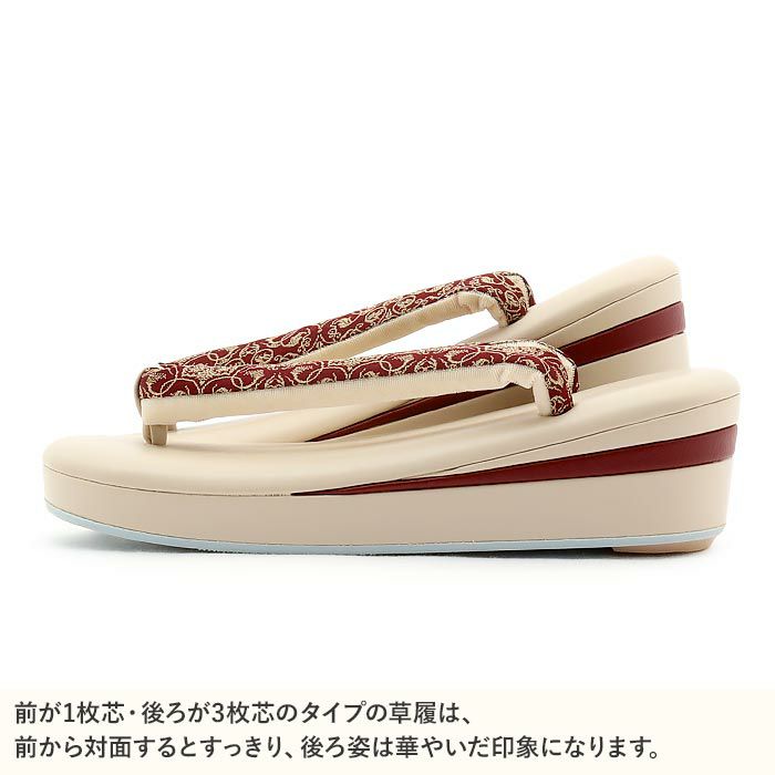 3. 草履 レディース 普段用 カジュアル草履 龍村裂 龍村美術織物裂 ベージュ エンジ ワイン 唐草文錦 後ろ3枚芯 日本製