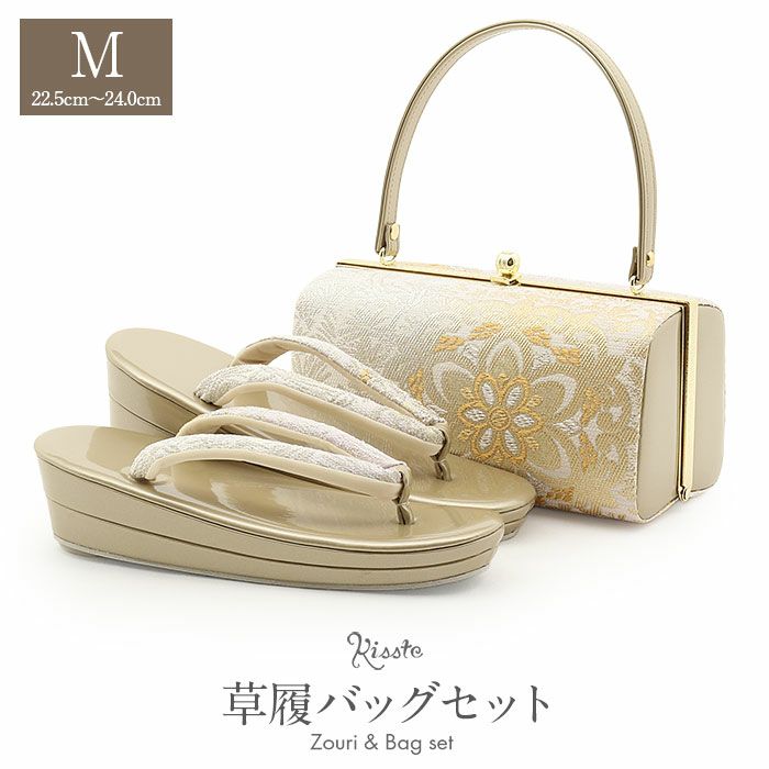 痛くなくて歩きやすい、初めての方にも安心の履き心地 振袖 草履バッグセット 成人式 草履バッグセット 振袖用 M ゴールド アイボリー ラベンダー 金 白 薄紫 華紋 高野槙 エナメル 2枚芯