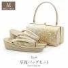 3. 振袖 草履バッグセット 成人式 草履バッグセット 振袖用 M ゴールド アイボリー ラベンダー 金 白 薄紫 華紋 高野槙 エナメル 2枚芯