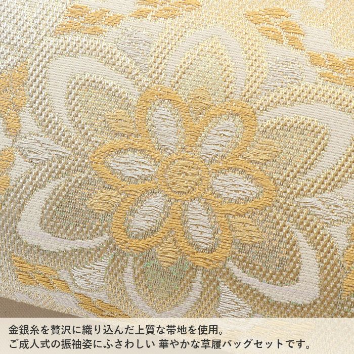 成人式や結婚式での振袖や卒業袴といった、華やかなおきものの装いに合わせていただける草履バッグセットです。
