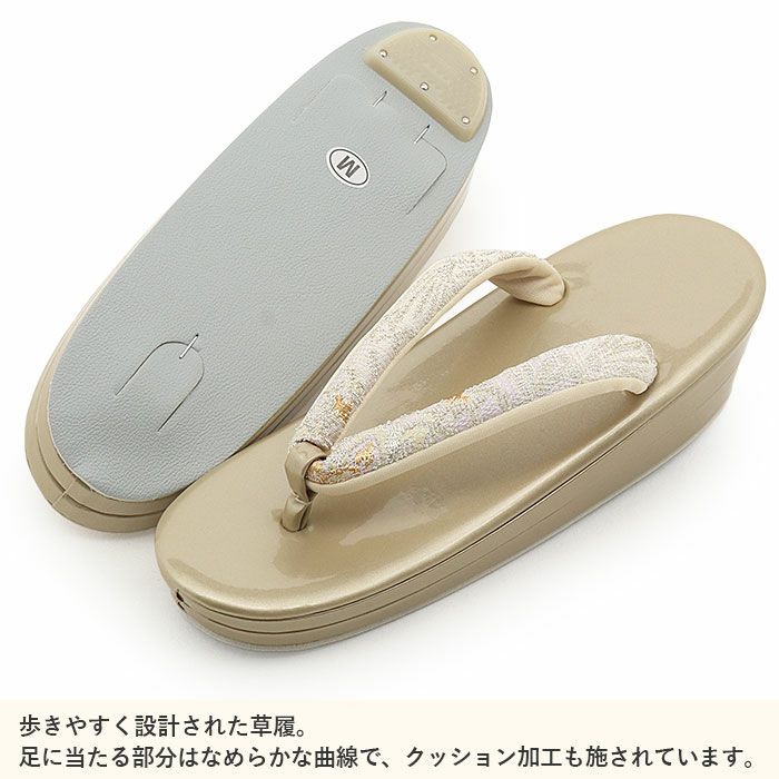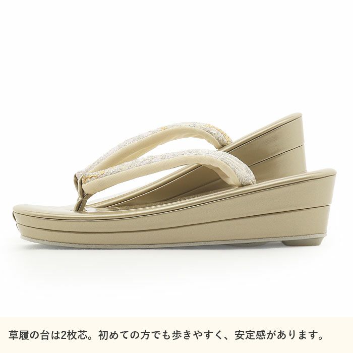 草履台は2枚芯で適度な高さがあり、スタイルアップ効果も期待でき、クッション性のある履き心地で長時間のお出かけでも安心です。
