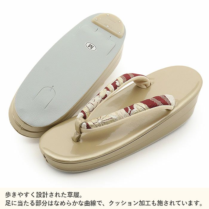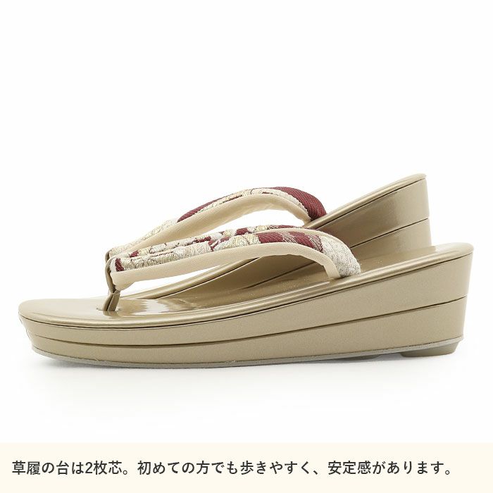 草履台は2枚芯で適度な高さがあり、スタイルアップ効果も期待でき、クッション性のある履き心地で長時間のお出かけでも安心です。