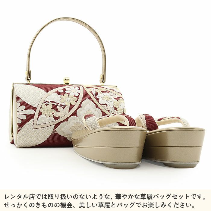 バッグ・花緒:エンジ・ゴールド
