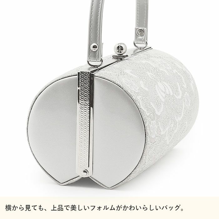 ■バッグはコンパクトながら、小ぶりなお財布やスマートフォン・ハンカチや口紅などの手放せない手荷物が入る収納力があり、お祝いの席にもぴったりな洗練されたデザイン。