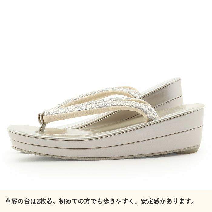 草履台は2枚芯で適度な高さがあり、スタイルアップ効果も期待でき、クッション性のある履き心地で長時間のお出かけでも安心です。