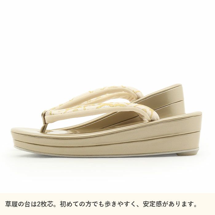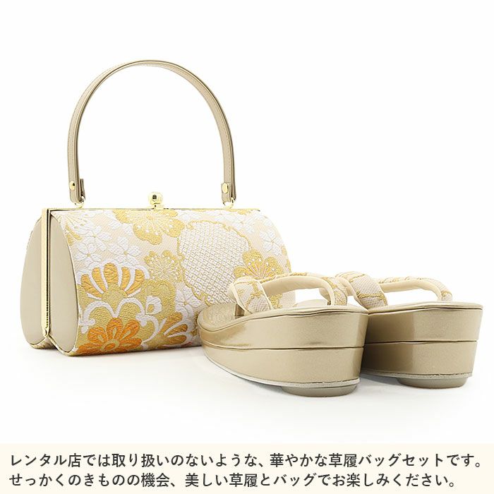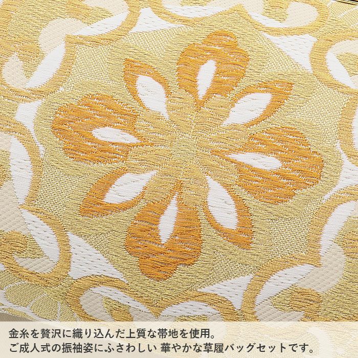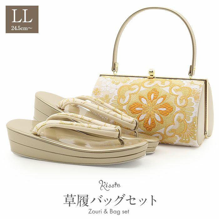 振袖 草履バッグセット 成人式 草履バッグセット 振袖用 LL 大きい薄ベージュ ゴールド 金 華紋 鹿の子 雪輪 エナメル 2枚芯