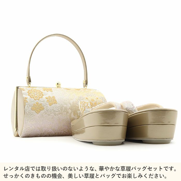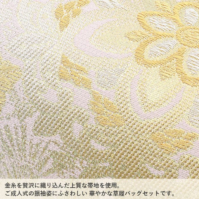 成人式 振袖 草履バッグセット 草履 バッグ LL 大きい ゴールド アイボリー ラベンダー 金 白 薄紫 華紋 高野槙 振袖用帯地