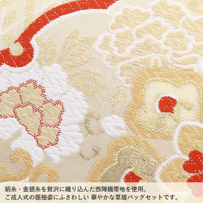 他の画像を見る 痛くなく歩きやすい、初めての方にも安心の履き心地 成人式 振袖 草履バッグセット 草履 バッグ フリー L ホワイト ゴールド 白 金 牡丹 帯地 2枚芯 日本製 定価 ¥ 22,000 のところ 当店特別価格 ¥ 19,800 税込 (0) カートに入れる お気に入りに登録する