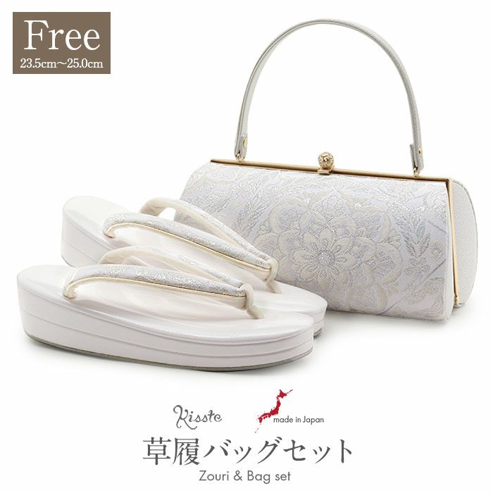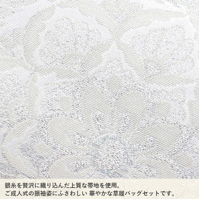成人式 振袖 草履バッグセット 草履 バッグ フリー L ホワイト シルバー 白 銀 華紋 花菱 振袖用帯地 エナメル 2枚芯 日本製