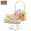 ◆東京・浅草製の伝統と格調を誇る【紗織】ブランド◆ 成人式や結婚式での振袖や卒業袴といった、華やかなおきものの装いに合わせていただける 履きものどころ・浅草の有名草履バッグセットブランドの「紗織」が手掛ける振袖用草履バッグセットです。 職人がこだわって作った草履は、履きやすさを重視し、クッション性に優れ、長時間の歩行でも足の疲れを軽減します。 薄金地に金糸の輝きを織り込み、華紋や立涌などのおめでたい柄をあしらった上品なデザイン。 光の角度によって紋様がきらめき、特別な一日をより華やかに引き立てます。 バッグ生地と花緒には、西陣織・正絹帯地を使用した、振袖スタイルに相応しい豪華で華やかさのあるデザイン。 繊維1本1本に抗菌効果 防臭効果もあるパールトーン加工(撥水加工)を施し、風合いや光沢、美しさを保ち長くご愛用いただけます。 バッグは、小ぶりなお財布やスマートフォン、ハンカチや口紅などの手放せない手荷物が入る容量。 また、底鋲もついて、畳や机に置くときにバッグ本体を擦ってしまうのを防ぐことができます。 他の人とは違うオシャレにこだわりたい、そんなお洒落女子におススメする、ワンランク上の草履バッグセット。 成人式の振袖を始め、卒業式の袴や結婚式のお呼ばれなど華やかな着姿にご利用いただけます。 着姿をスタイルよく魅せてくれる美しい「日本製」の振袖用草履バッグセットを、大切なハレの日にぜひご活用下さい。