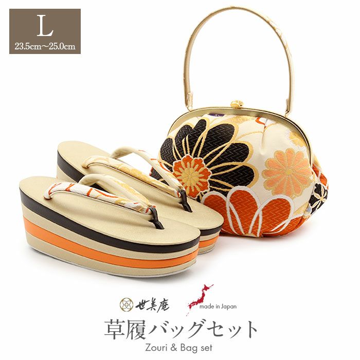 他の画像を見る ≪在庫限り≫ 成人式や結婚式の華やかな振袖に 成人式 草履バックセット 振袖 草履バッグセット 草履 バッグ 世美庵 Lサイズ 金 オレンジ 黒 正絹袋帯地 優花緒 4枚芯 ハイヒール 厚底 日本製 当店特別価格 ¥ 47,300 税込 (0) カートに入れる お気に入りに登録する