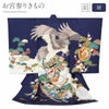 産まれて初めてのお祝い行事のお宮参り。 健やかな成長や大成、出世などを意味する願いや思いがたくさんこめられた柄のお祝い着です。 ご家族の思いのこもったお着物にいかがですか。 鋭い眼差しで空を舞う鷹の文様は、「先を見通す力」や「高みを目指す志」を象徴し、お子様が大きな世界へ羽ばたいていく未来への願いが込められています。 文様のまわりには、太鼓や鏡裏文をはじめ、松竹梅や巻物など、古来より縁起物とされる吉祥文様を贅沢に配しました。 喜びの音を響かせる太鼓、真心や知恵を表す鏡、繁栄と長寿を願う松竹梅が、お子様の健やかな成長をあたたかく見守ります。 鷹の冠羽(かんう)部分には刺繍や金刺繍を施し、立体感と華やかさをプラス。 光を受けて上品にきらめき、晴れの日にふさわしい格調高い印象を演出します。 生地には、繊細な地紋を施し、光の加減で文様がふわりと浮かび上がる上品な仕上がりに。 晴れの日にふさわしい華やかさと、落ち着きある高級感を兼ね備えています。 表地は絹100%で仕立てておりますので、正絹ならではの柔らかな光沢と滑らかな肌触りが感じられます。 着物と長襦袢の前身ごろには紐が縫い付けてありますため、仕付け糸を解いて頂ければすぐにご使用いただけます。 ご兄弟での着用や、七五三にもお使いいただけます。 贈り物や保管の際に便利な化粧箱も別途販売しております。 生まれて初めてのお着物にお勧めの逸品、ぜひ手に取ってお楽しみくださいませ。