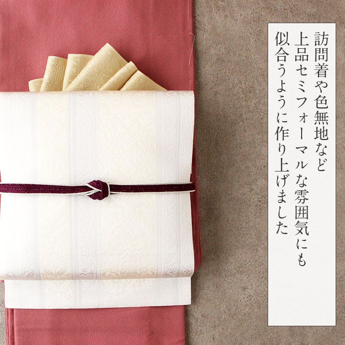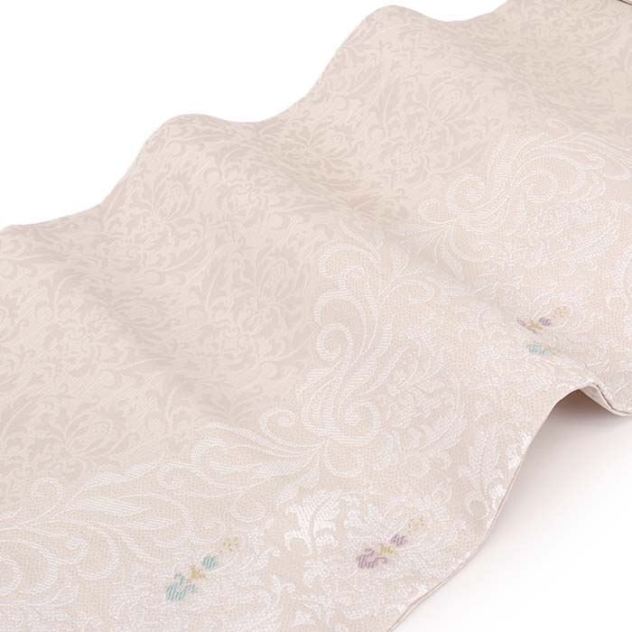 他の画像を見る ≪在庫限り≫ 小紋 紬 色無地 御召 などのお着物に 名古屋帯 ベージュ アイボリー ダマスク 唐草 西陣織 弥栄織物 普段用 九寸 仕立て上がり 絹 未使用 新品 春 秋 冬 当店特別価格 ¥ 33,000 税込 (0) お気に入りに登録する
