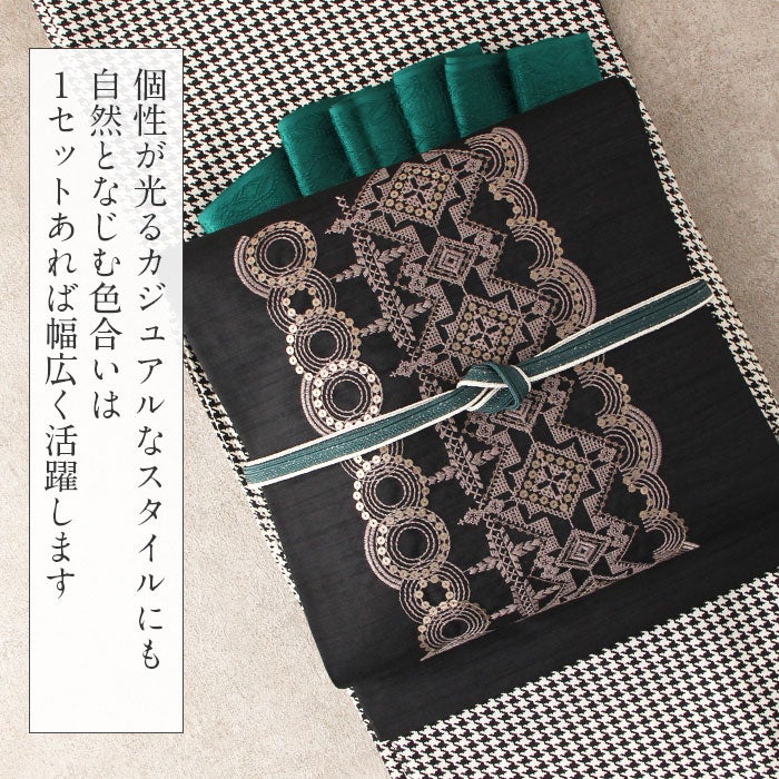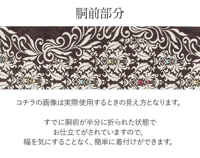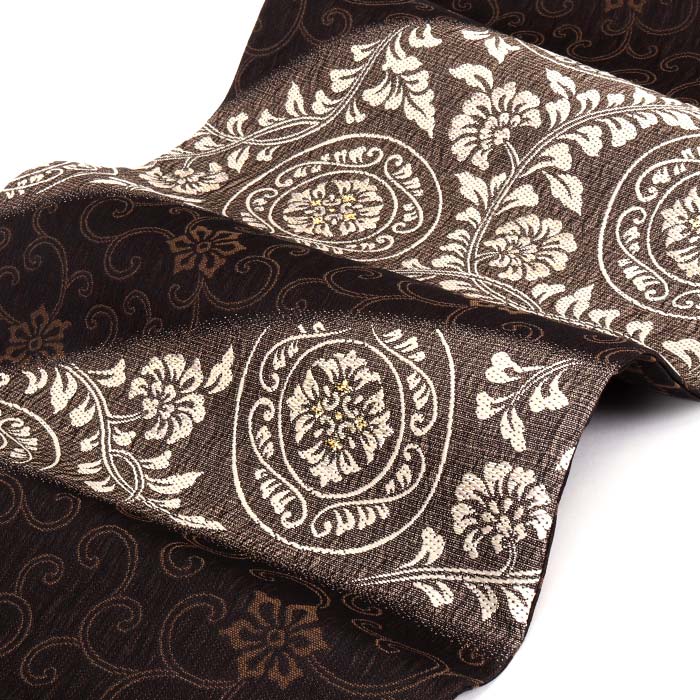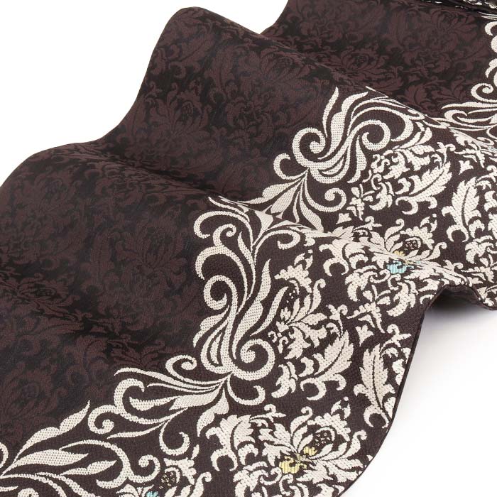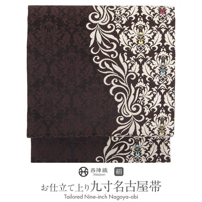 他の画像を見る ≪在庫限り≫ 小紋 紬 色無地 御召 などのお着物に 名古屋帯 黒 焦げ茶 ダマスク 唐草 西陣織 弥栄織物 普段用 九寸 仕立て上がり 絹 未使用 新品 春 秋 冬 当店特別価格 ¥ 33,000 税込 (0) お気に入りに登録する