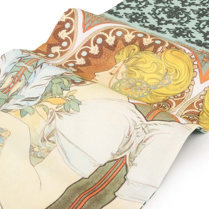 他の画像を見る ≪在庫限り≫ 小紋 紬 色無地 御召 などのお着物に 名古屋帯 緑 黄色 ミュシャ 羽根の精 酒井守織物謹製 日本製 九寸 仕立て上がり 絹 和あーと 未使用 新品 春 秋 冬 おび なごや帯 和Art 当店特別価格 ¥ 44,000 税込 (0) お気に入りに登録する