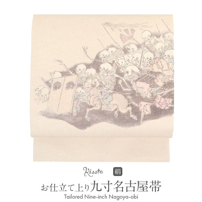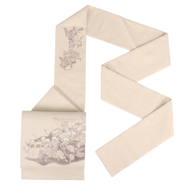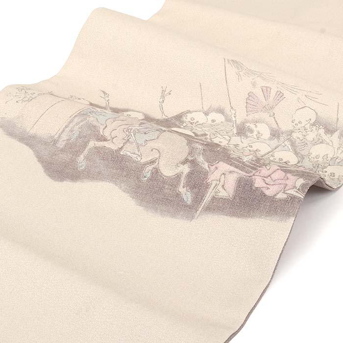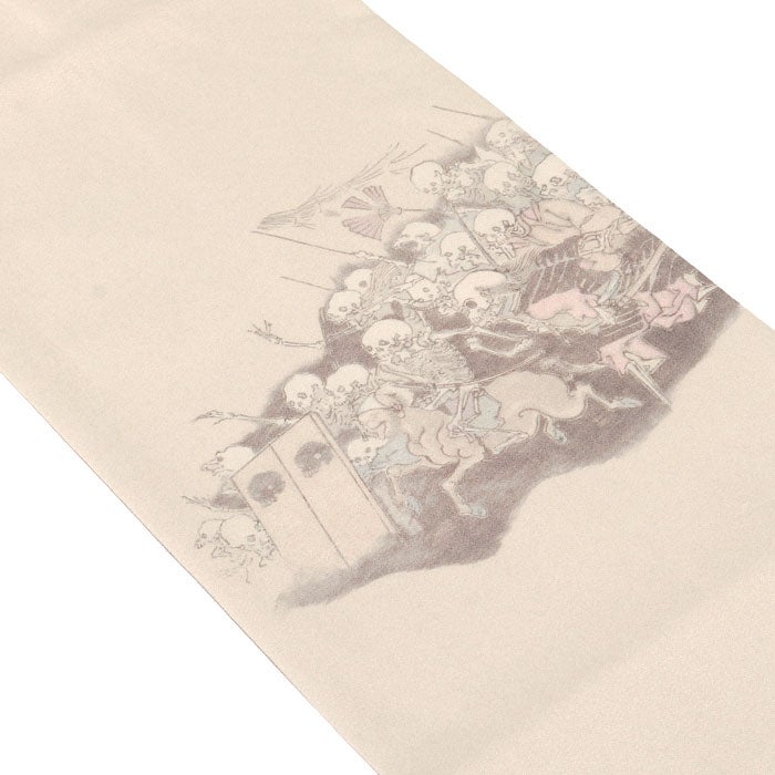 他の画像を見る ≪在庫限り≫ 小紋 紬 色無地 御召 などのお着物に 名古屋帯 ベージュ アイボリー 河鍋暁斎 骸骨 酒井守織物謹製 日本製 九寸 仕立て上がり 絹 和あーと 未使用 新品 春 秋 冬 おび なごや帯 和Art 当店特別価格 ¥ 44,000 税込 (0) お気に入りに登録する